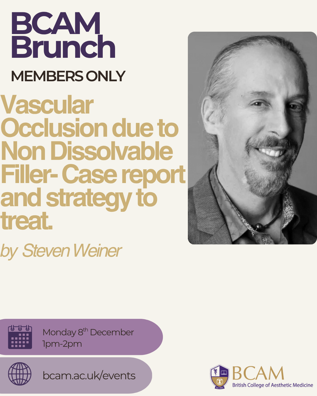 Join us for the BCAM Brunch- Vascular Occlusion due to Non Dissolvable Filler. Case report and strategy to treat. with Dr Steven Weiner