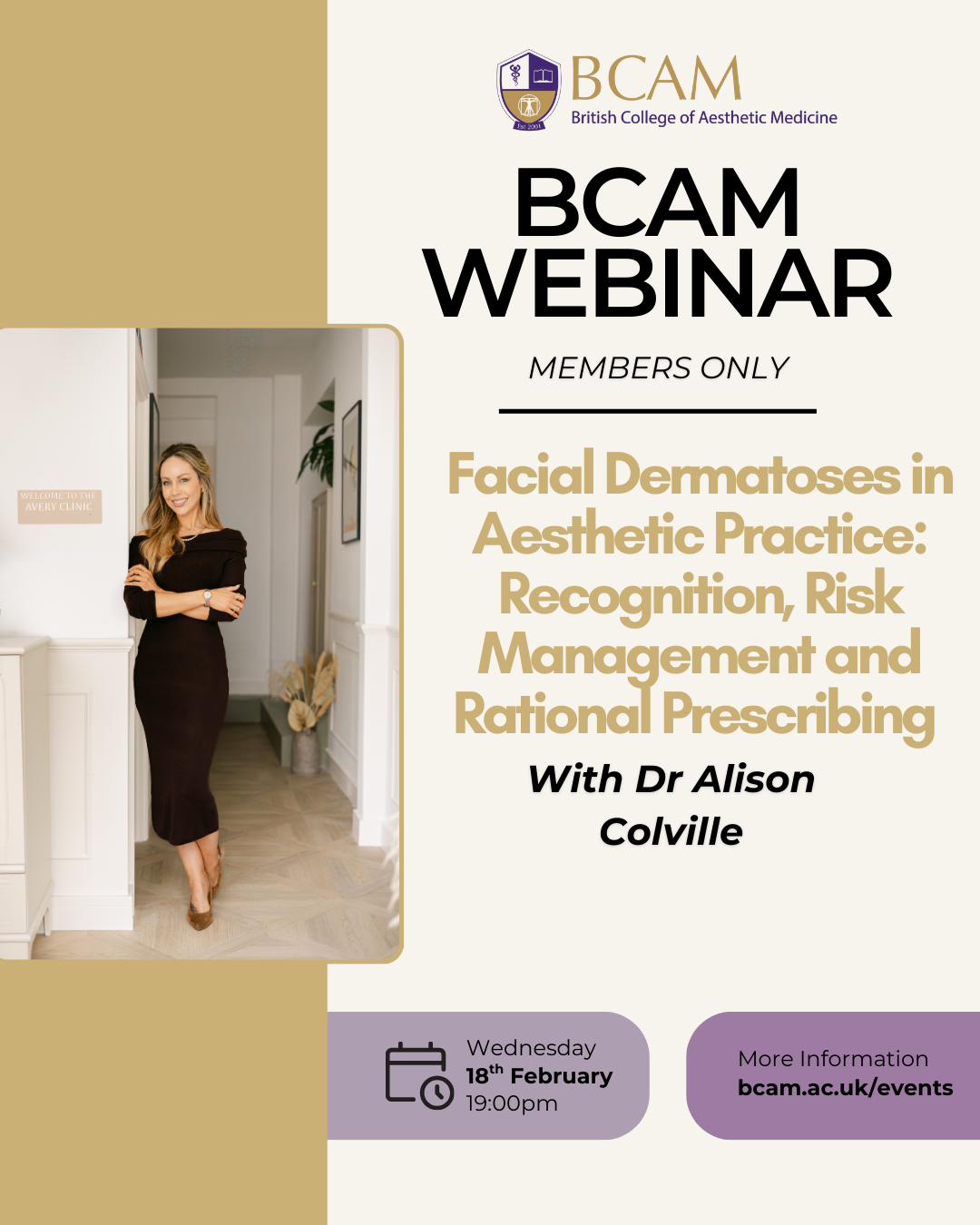 Join us for the BCAM Webinar - Facial Dermatoses in Aesthetic Practice: Recognition, Risk Management and Rational Prescribing with Alison Colville
