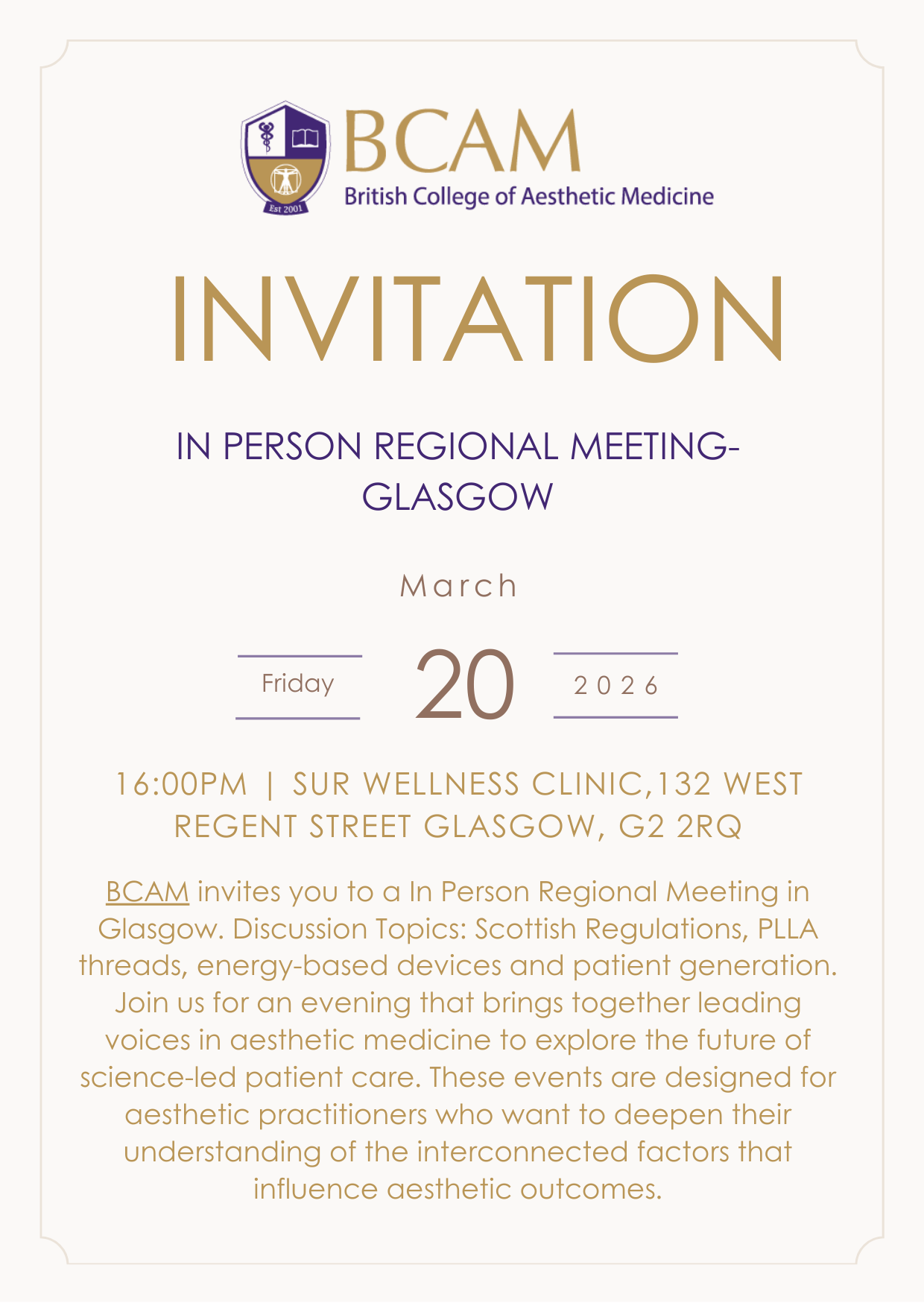 We would like to invite you to our In-Person Regional Meeting - Glasgow