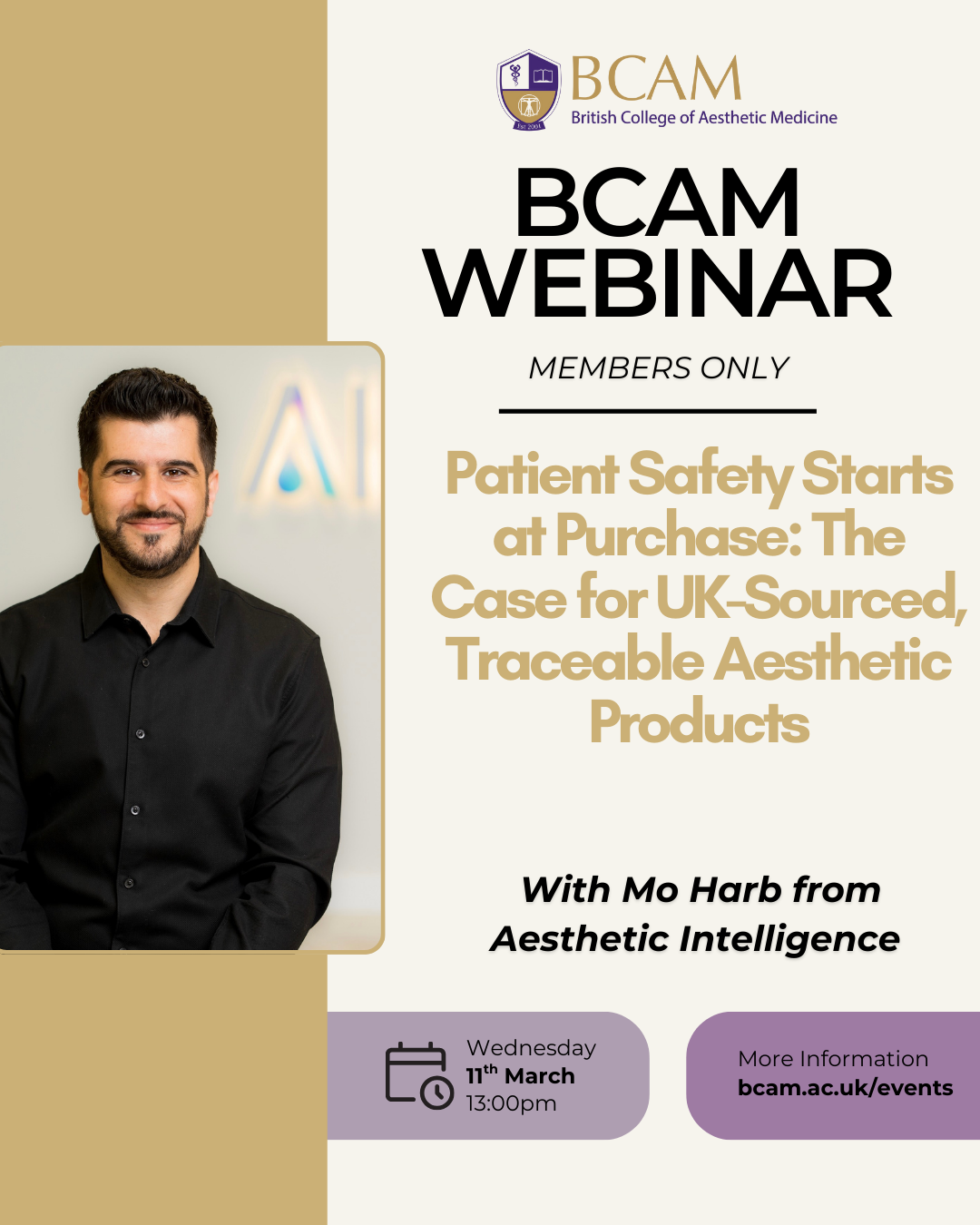 Join us for the BCAM Webinar- Patient Safety Starts at Purchase: The Case for UK-Sourced, Traceable Aesthetic Products with Mo Harb from Aesthetic Intelligence